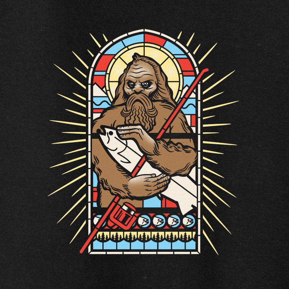 Saint Sasquatch is the patron saint of fishing. Honestly, that's just something we made up but, it sounds good doesn't it? Look at old Sassy just glowing and cradling Steely. Elusive and majestic!