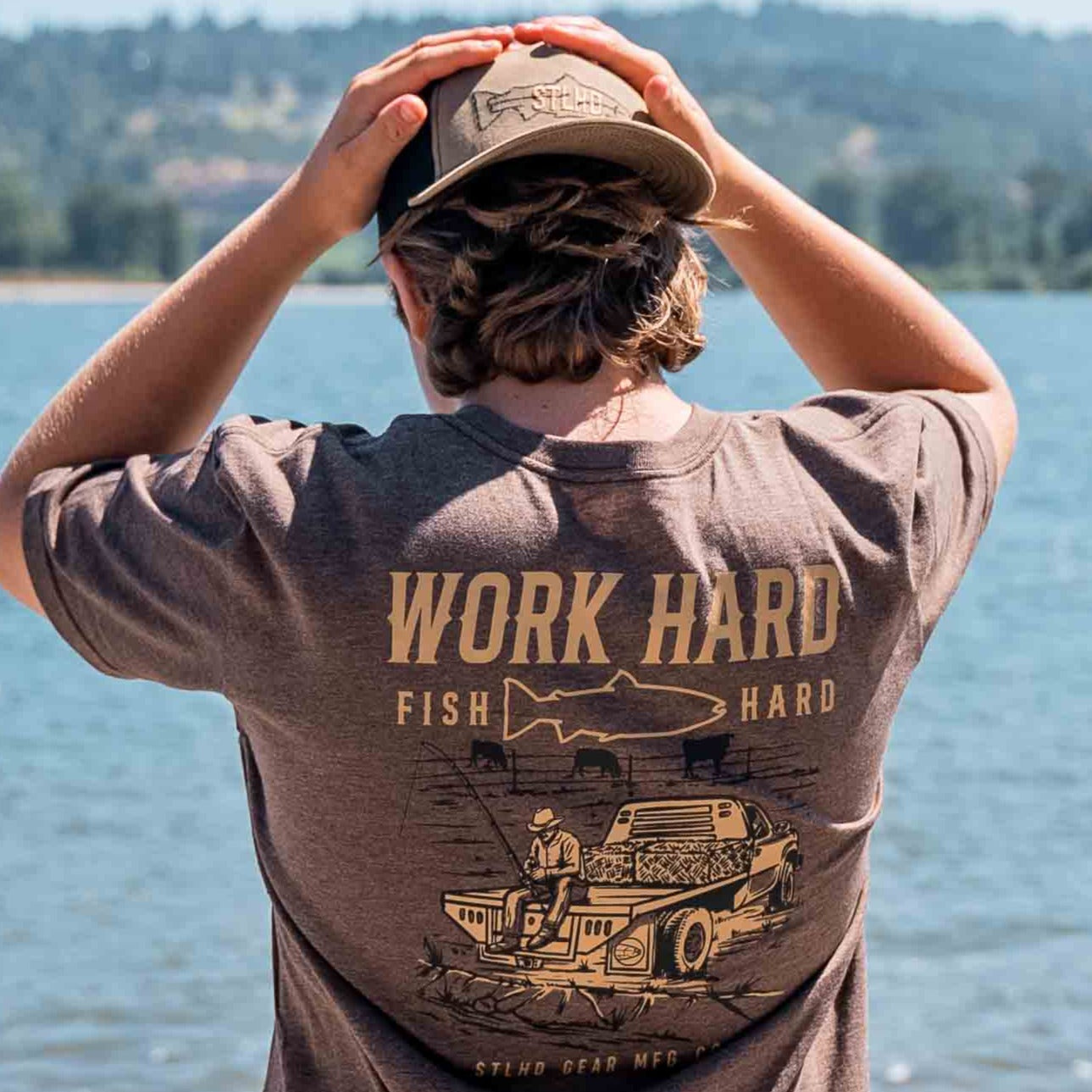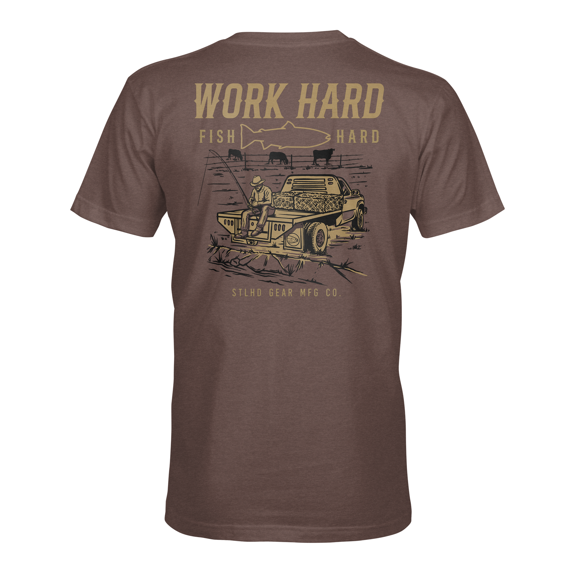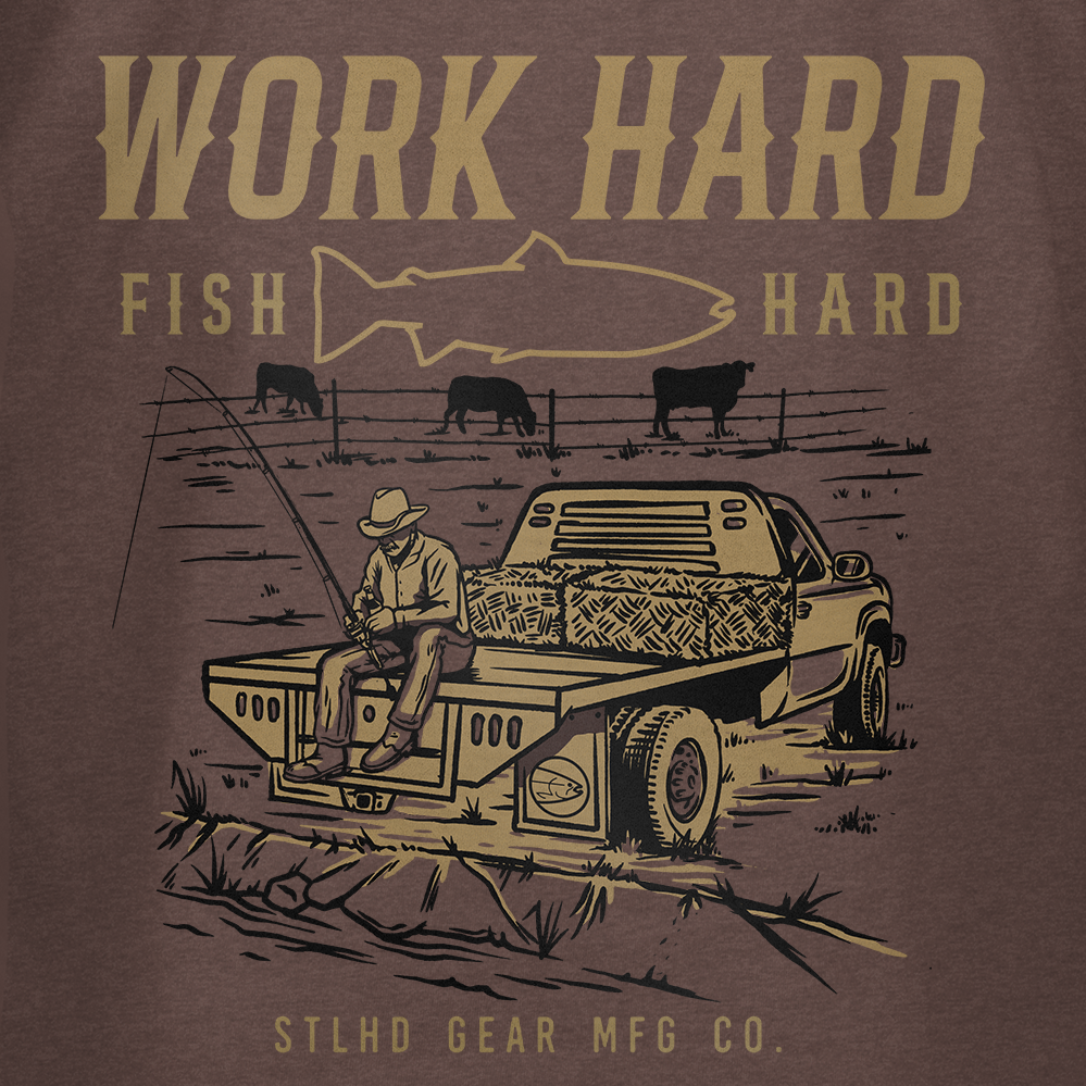 Break a sweat with the STLHD Men’s Rancher Tee. Designed for hardworking individuals who also enjoy time on the water, this tee is perfect for any adventure. With the motto "work hard fish hard" displayed proudly, you'll stay motivated on and off the river.